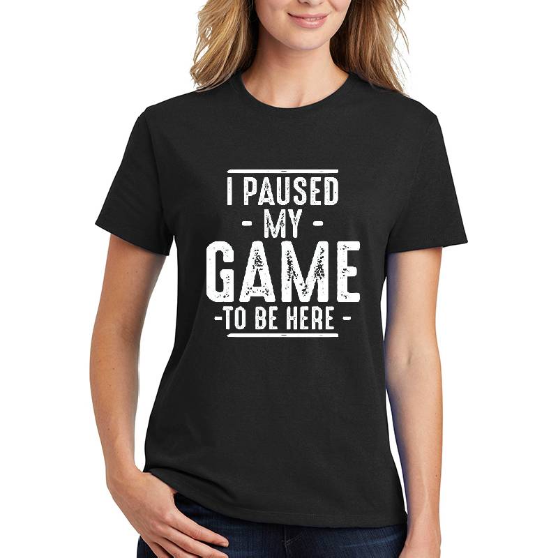 I Paused My Game to Be Here | Funny Video Gamer Humor Joke for Men Women T-Shirt design artwork printed on Unisex T-Shirt with latest DTF technology. Our new management team will place serving you. We offer best online shopping experience to our customers with 30 days return and exchange policy. Shop with confidence at T-funny.com