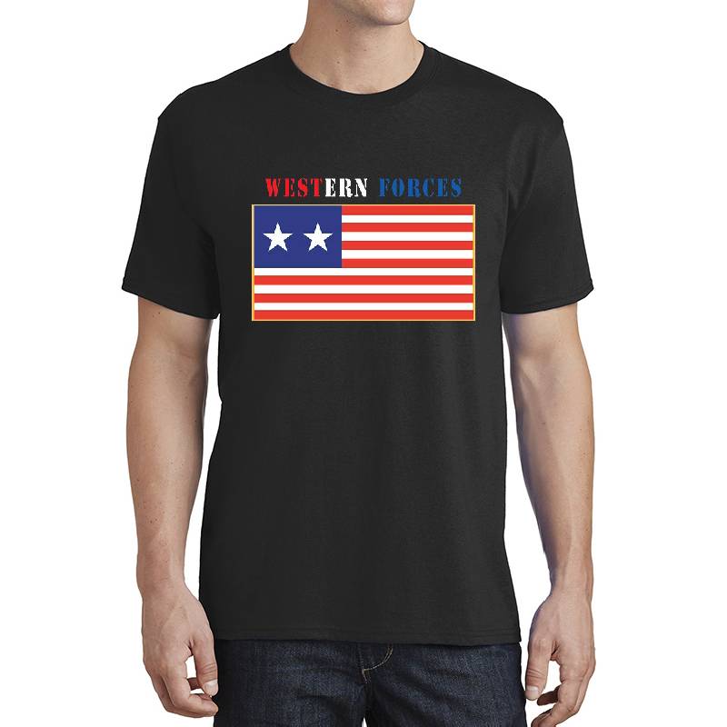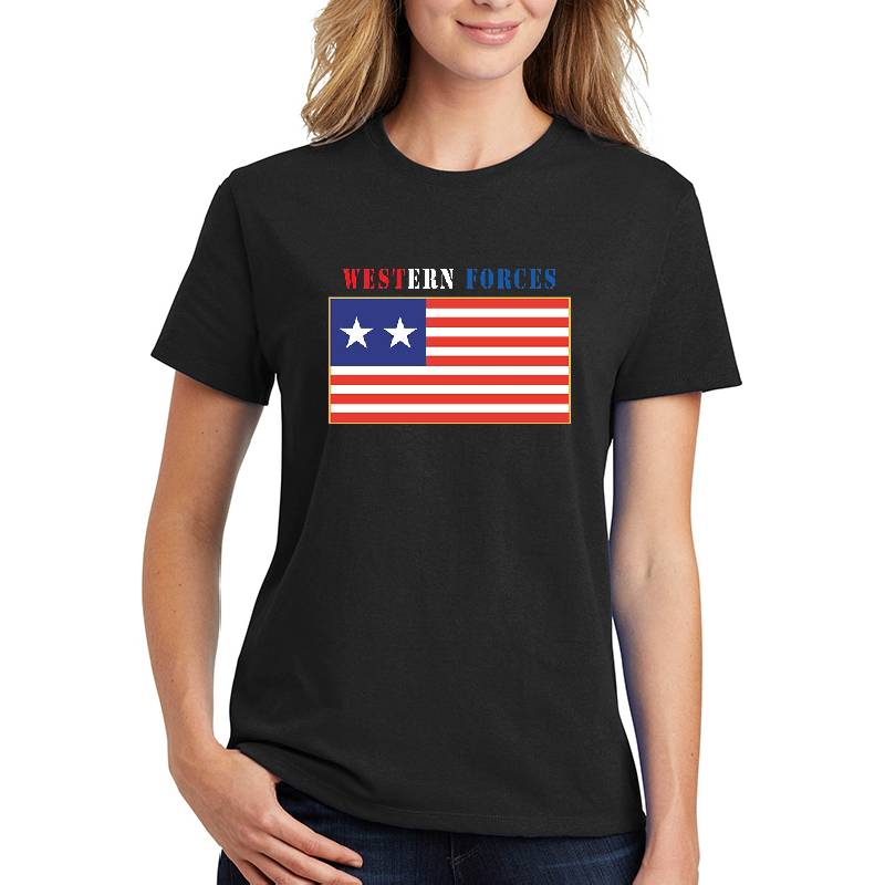 Flag - Western Forces - 2 Star Flag w Txt X 300 design artwork printed on Unisex T-Shirt with latest DTF technology. Our new management team will place serving you. We offer best online shopping experience to our customers with 30 days return and exchange policy. Shop with confidence at T-funny.com