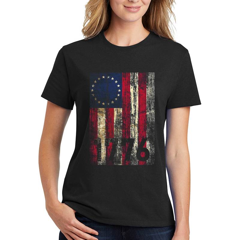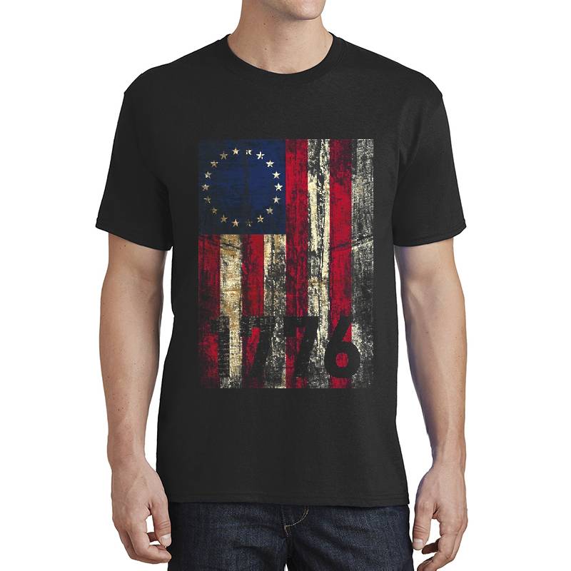 Betsy Ross Flag Vintage America First 1776 Betsy Ross Flag design artwork printed on Unisex T-Shirt with latest DTF technology. Our new management team will place serving you. We offer best online shopping experience to our customers with 30 days return and exchange policy. Shop with confidence at T-funny.com