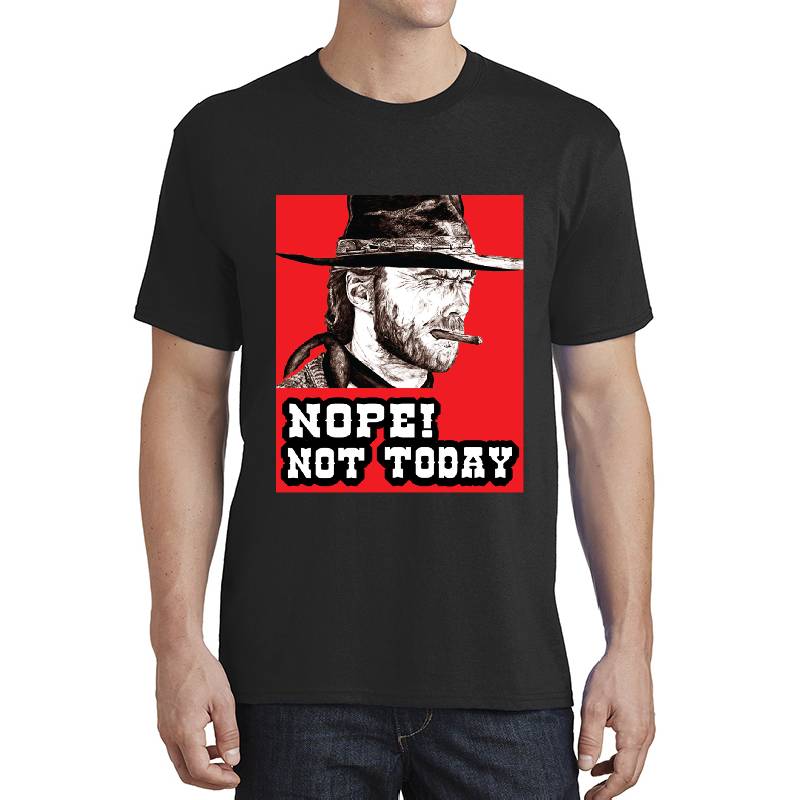 Nope Not Today Clint Eastwood Illustration design artwork printed on Unisex T-Shirt with latest DTF technology. Our new management team will place serving you. We offer best online shopping experience to our customers with 30 days return and exchange policy. Shop with confidence at T-funny.com
