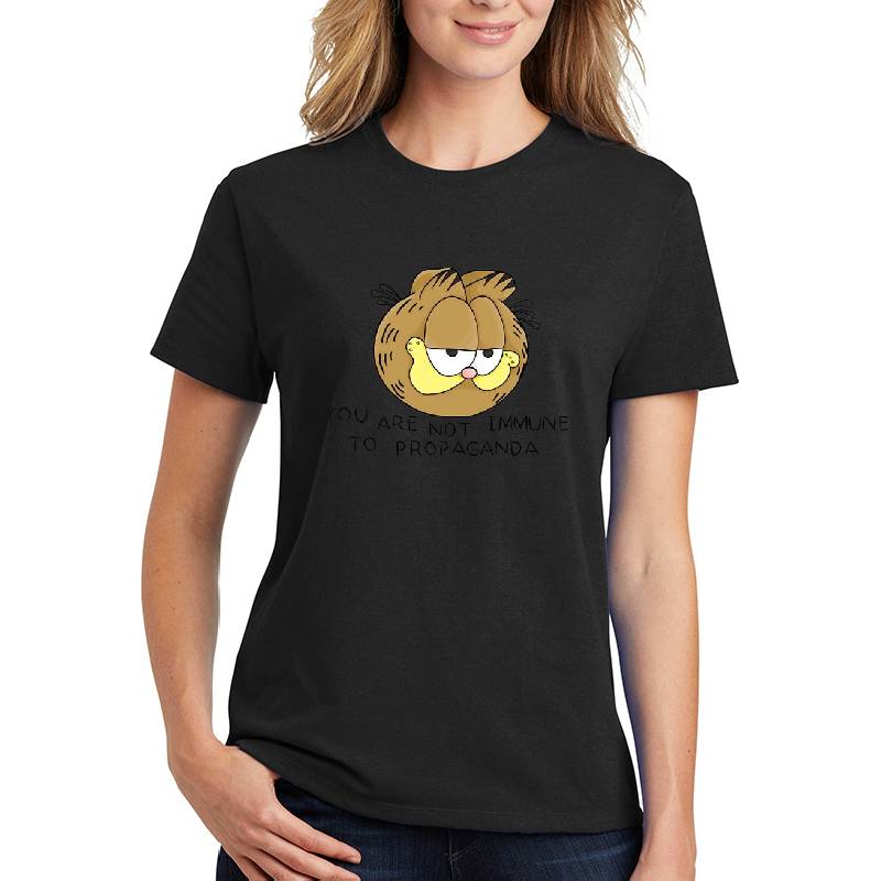 Garfield You are not immune to propaganda HD design artwork printed on Unisex T-Shirt with latest DTF technology. Our new management team will place serving you. We offer best online shopping experience to our customers with 30 days return and exchange policy. Shop with confidence at T-funny.com