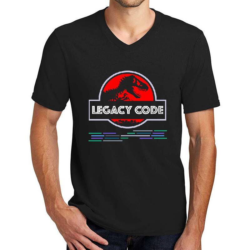 Developer Legacy Code design artwork printed on Unisex V-Neck T-Shirt with latest DTF technology. Our new management team will place serving you. We offer best online shopping experience to our customers with 30 days return and exchange policy. Shop with confidence at T-funny.comProduct Details