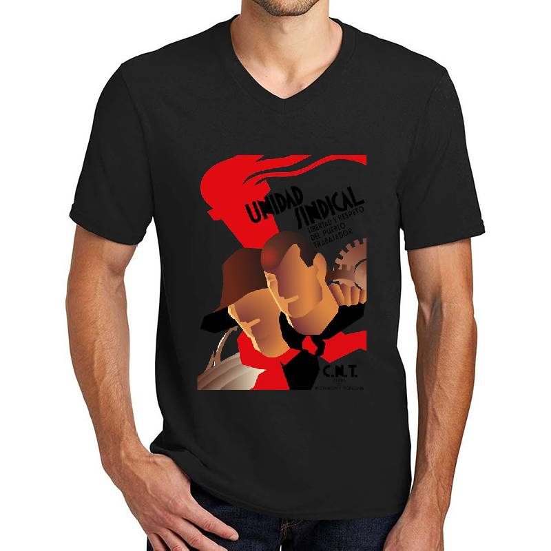 CNT Unidad Sindical - Spanish Civil War, Anarchist, Socialist, Leftist design artwork printed on Unisex V-Neck T-Shirt with latest DTF technology. Our new management team will place serving you. We offer best online shopping experience to our customers with 30 days return and exchange policy. Shop with confidence at T-funny.comProduct Details