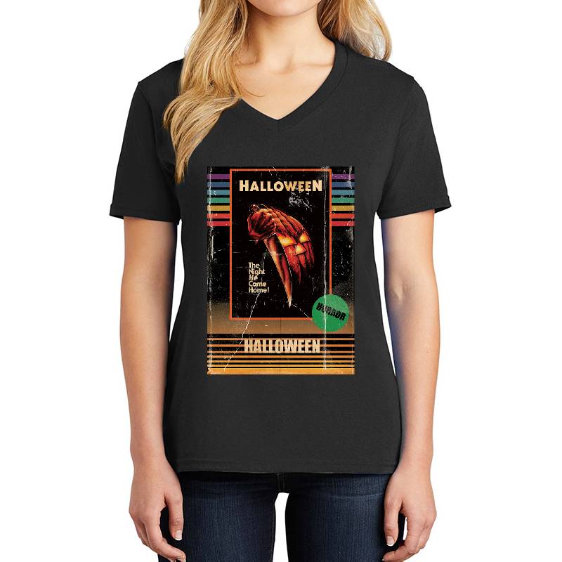 Halloween 1978 Vhs Horror Movie Poster design artwork printed on Unisex V-Neck T-Shirt with latest DTF technology. Our new management team will place serving you. We offer best online shopping experience to our customers with 30 days return and exchange policy. Shop with confidence at T-funny.comProduct Details