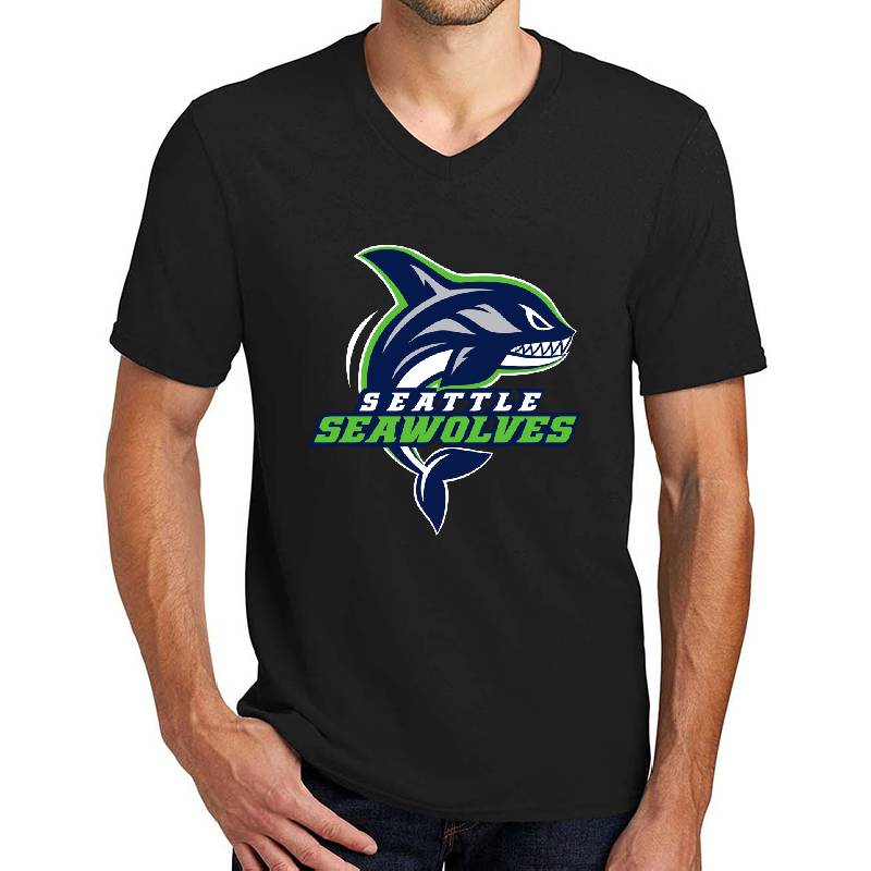 Seattle Seawolves Rugby design artwork printed on Unisex V-Neck T-Shirt with latest DTF technology. Our new management team will place serving you. We offer best online shopping experience to our customers with 30 days return and exchange policy. Shop with confidence at T-funny.com