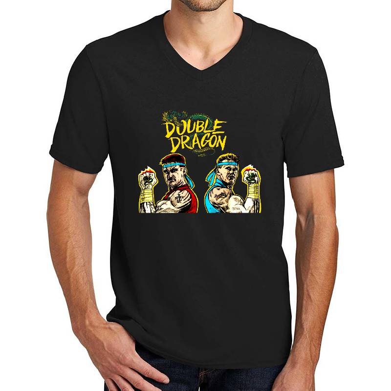 Double Dragon design artwork printed on Unisex V-Neck T-Shirt with latest DTF technology. Our new management team will place serving you. We offer best online shopping experience to our customers with 30 days return and exchange policy. Shop with confidence at T-funny.comProduct Details