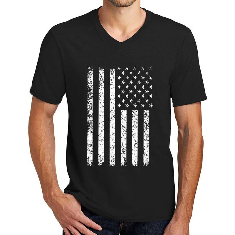 Distressed American US Flag design artwork printed on Unisex V-Neck T-Shirt with latest DTF technology. Our new management team will place serving you. We offer best online shopping experience to our customers with 30 days return and exchange policy. Shop with confidence at T-funny.comProduct Details
