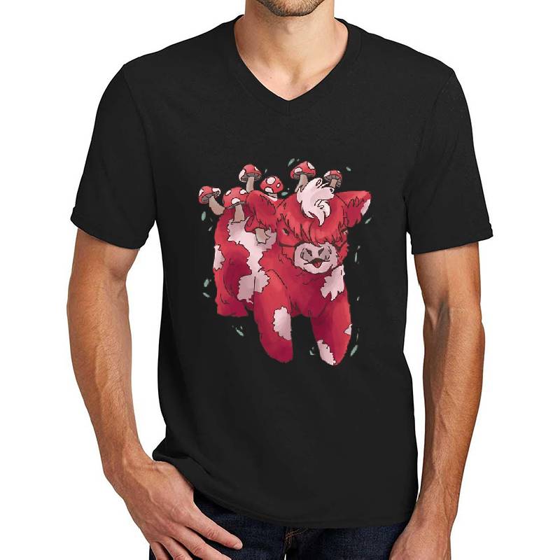 mooshroom fluffy cow design artwork printed on Unisex V-Neck T-Shirt with latest DTF technology. Our new management team will place serving you. We offer best online shopping experience to our customers with 30 days return and exchange policy. Shop with confidence at T-funny.comProduct Details