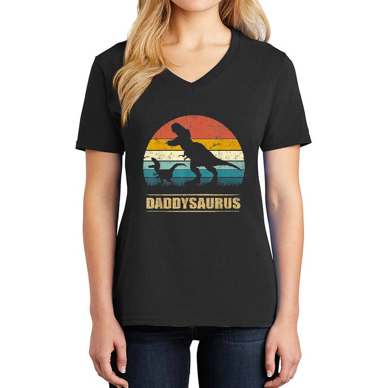 Daddysaurus Shirt Fathers Day Gifts T rex Daddy Saurus Mens design artwork printed on Unisex V-Neck T-Shirt with latest DTF technology. Our new management team will place serving you. We offer best online shopping experience to our customers with 30 days return and exchange policy. Shop with confidence at T-funny.com