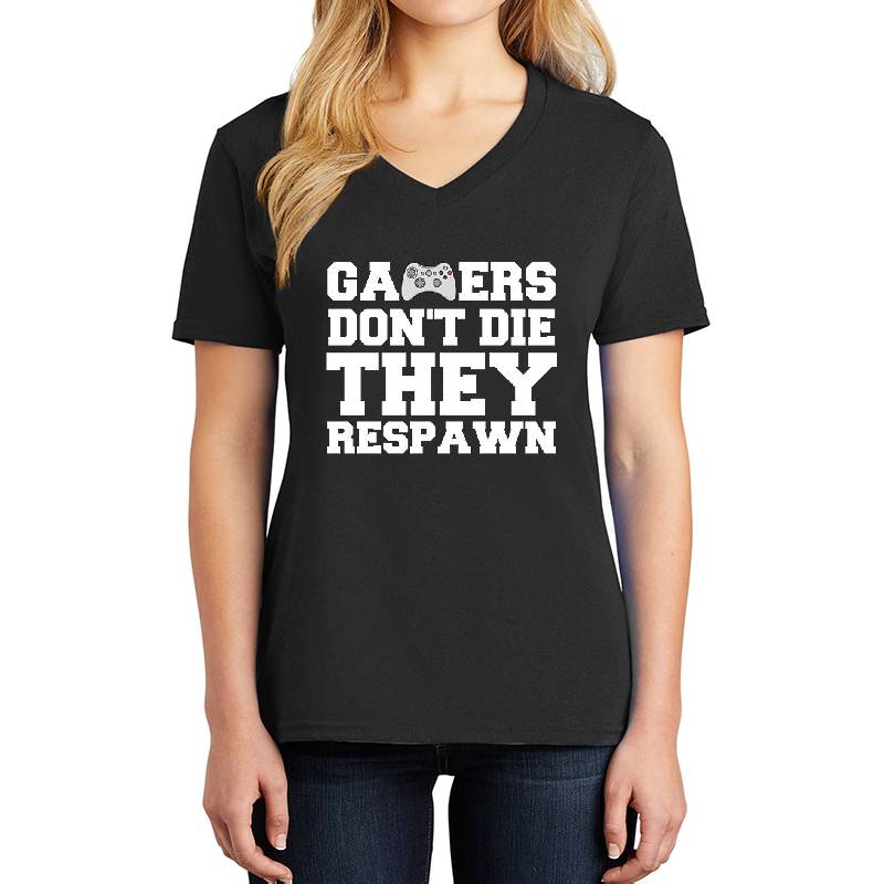 Gamers Don't Die They Respawn design artwork printed on Unisex V-Neck T-Shirt with latest DTF technology. Our new management team will place serving you. We offer best online shopping experience to our customers with 30 days return and exchange policy. Shop with confidence at T-funny.com