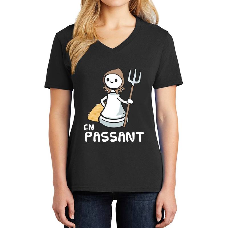 En Passant Chess Joke design artwork printed on Unisex V-Neck T-Shirt with latest DTF technology. Our new management team will place serving you. We offer best online shopping experience to our customers with 30 days return and exchange policy. Shop with confidence at T-funny.comProduct Details