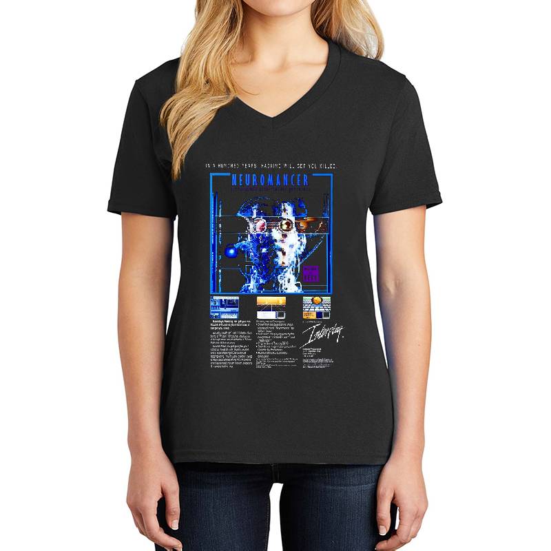 NEUROMANCER design artwork printed on Unisex V-Neck T-Shirt with latest DTF technology. Our new management team will place serving you. We offer best online shopping experience to our customers with 30 days return and exchange policy. Shop with confidence at T-funny.comProduct Details