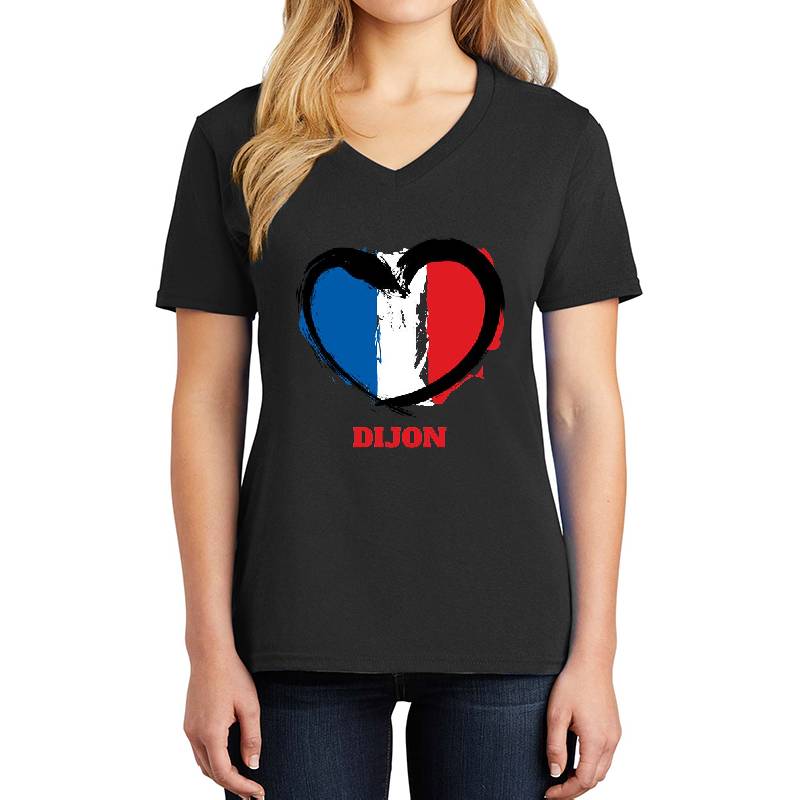 Love French City Dijon. Best Valentines Gift design artwork printed on Unisex V-Neck T-Shirt with latest DTF technology. Our new management team will place serving you. We offer best online shopping experience to our customers with 30 days return and exchange policy. Shop with confidence at T-funny.comProduct Details