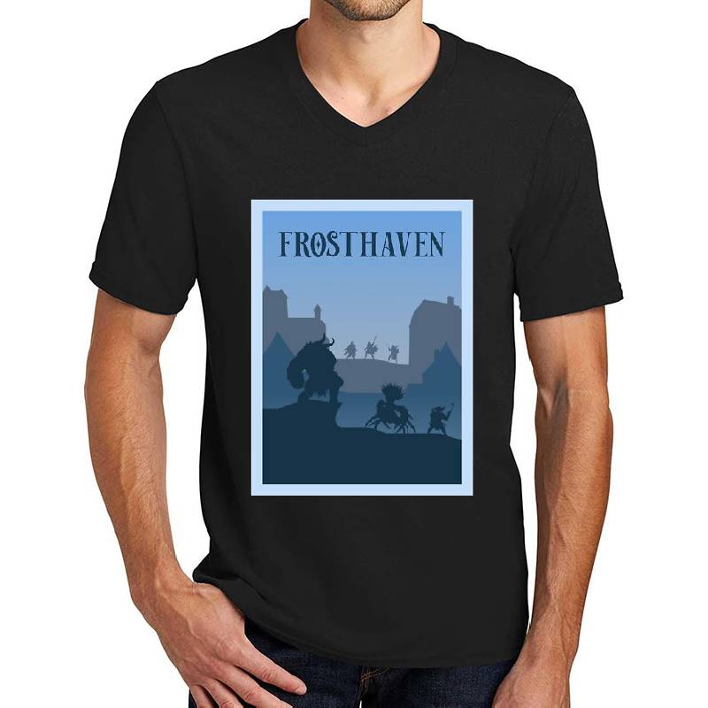 Frosthaven - Board Games - Minimalist Travel Poster Style - Board Game Art design artwork printed on Unisex V-Neck T-Shirt with latest DTF technology. Our new management team will place serving you. We offer best online shopping experience to our customers with 30 days return and exchange policy. Shop with confidence at T-funny.com