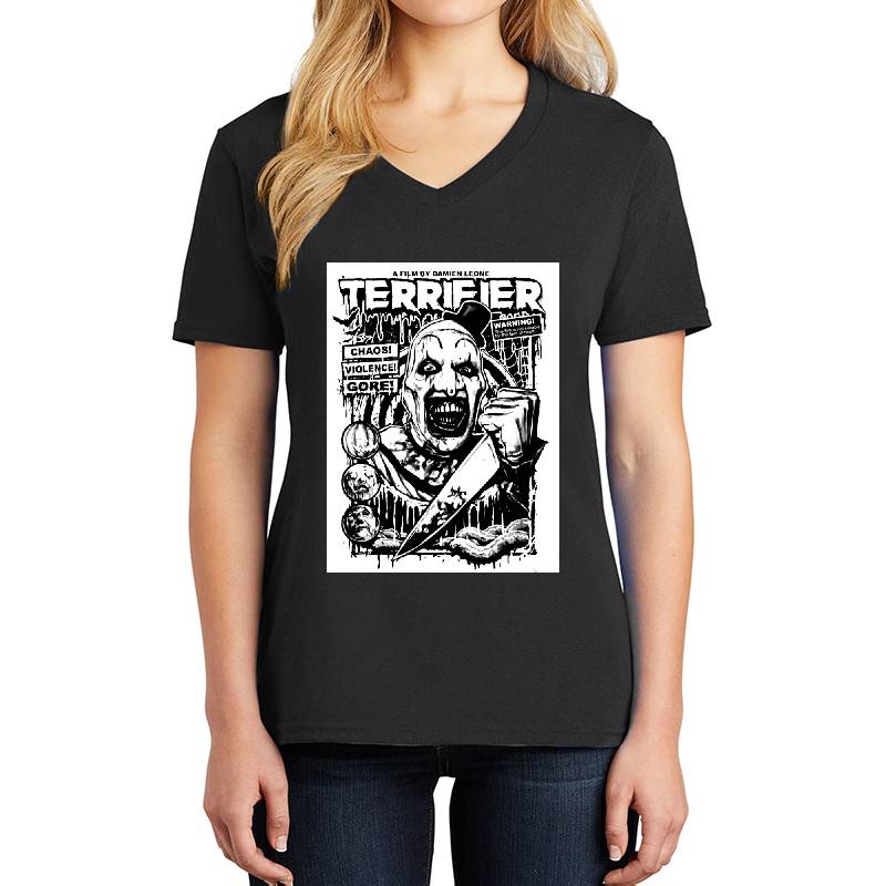 Terrifier Movie Horror Art The Clown design artwork printed on Unisex V-Neck T-Shirt with latest DTF technology. Our new management team will place serving you. We offer best online shopping experience to our customers with 30 days return and exchange policy. Shop with confidence at T-funny.comProduct Details