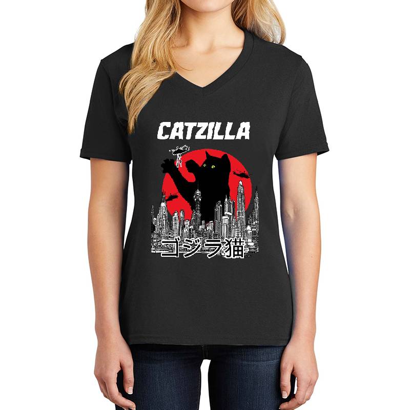Catzilla design artwork printed on Unisex V-Neck T-Shirt with latest DTF technology. Our new management team will place serving you. We offer best online shopping experience to our customers with 30 days return and exchange policy. Shop with confidence at T-funny.comProduct Details