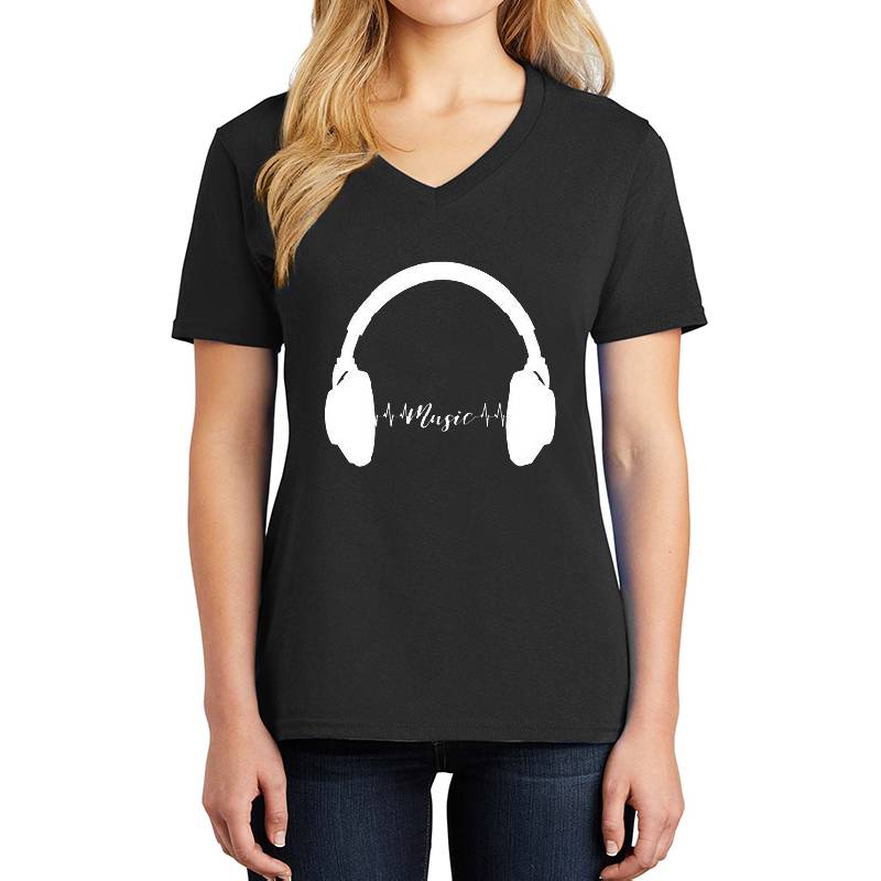 Earphones With Heartbeat Lines - Music design artwork printed on Unisex V-Neck T-Shirt with latest DTF technology. Our new management team will place serving you. We offer best online shopping experience to our customers with 30 days return and exchange policy. Shop with confidence at T-funny.com