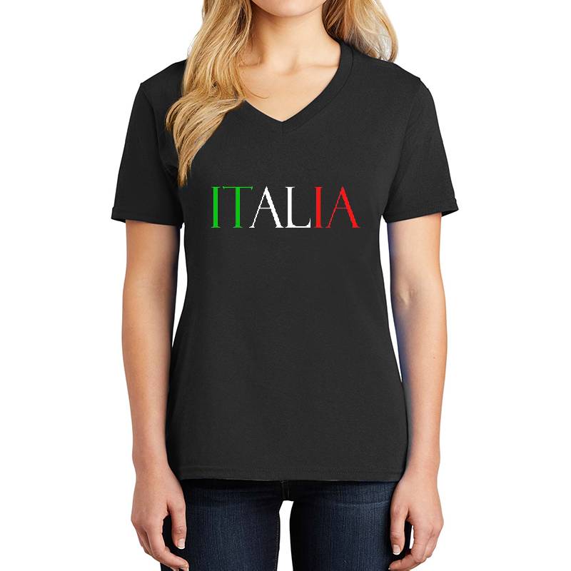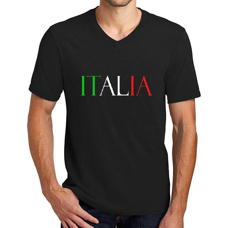 Italia - Italy Flag Colors design artwork printed on Unisex V-Neck T-Shirt with latest DTF technology. Our new management team will place serving you. We offer best online shopping experience to our customers with 30 days return and exchange policy. Shop with confidence at T-funny.comProduct Details
