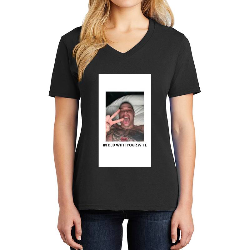 IN BED WITH YOUR WIFE - pete davidson design artwork printed on Unisex V-Neck T-Shirt with latest DTF technology. Our new management team will place serving you. We offer best online shopping experience to our customers with 30 days return and exchange policy. Shop with confidence at T-funny.comProduct Details