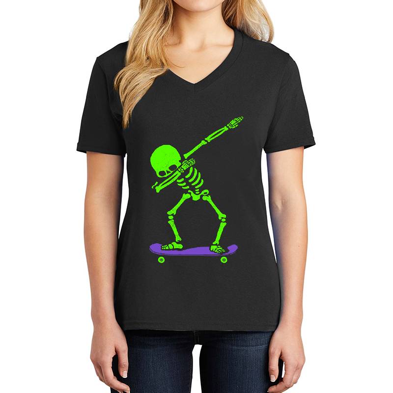 Halloween Dabbing Skeleton Skateboard Dab Skate Glow design artwork printed on Unisex V-Neck T-Shirt with latest DTF technology. Our new management team will place serving you. We offer best online shopping experience to our customers with 30 days return and exchange policy. Shop with confidence at T-funny.com