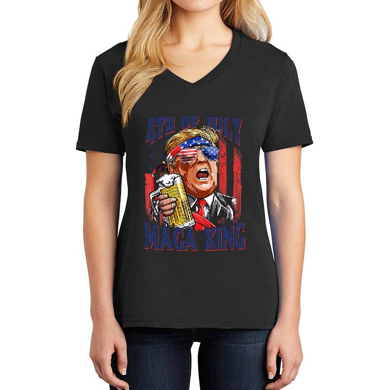 The Great Maga King Trump Happy 4th of July American Flag design artwork printed on Unisex V-Neck T-Shirt with latest DTF technology. Our new management team will place serving you. We offer best online shopping experience to our customers with 30 days return and exchange policy. Shop with confidence at T-funny.com