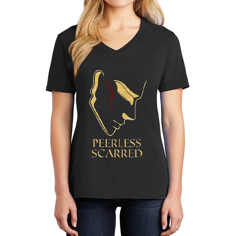 Peerless Scarred design artwork printed on Unisex V-Neck T-Shirt with latest DTF technology. Our new management team will place serving you. We offer best online shopping experience to our customers with 30 days return and exchange policy. Shop with confidence at T-funny.com