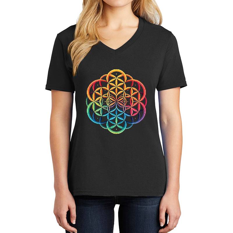 Flower Of Life design artwork printed on Unisex V-Neck T-Shirt with latest DTF technology. Our new management team will place serving you. We offer best online shopping experience to our customers with 30 days return and exchange policy. Shop with confidence at T-funny.comProduct Details
