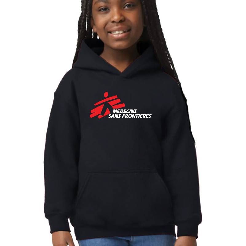 Medcins Sans Frontieres Logo White design artwork printed on Youth Hooded Sweatshirt with latest DTF technology. Our new management team will place serving you. We offer best online shopping experience to our customers with 30 days return and exchange policy. Shop with confidence at T-funny.com