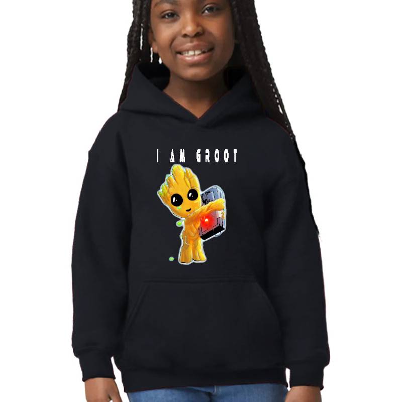 I Am Groot Guardiens Of The G-93 S design artwork printed on Youth Hooded Sweatshirt with latest DTF technology. Our new management team will place serving you. We offer best online shopping experience to our customers with 30 days return and exchange policy. Shop with confidence at T-funny.com