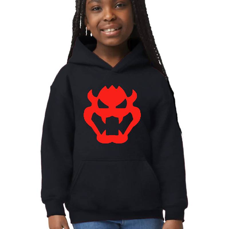 Super Mario Bowser Icon design artwork printed on Youth Hooded Sweatshirt with latest DTF technology. Our new management team will place serving you. We offer best online shopping experience to our customers with 30 days return and exchange policy. Shop with confidence at T-funny.com