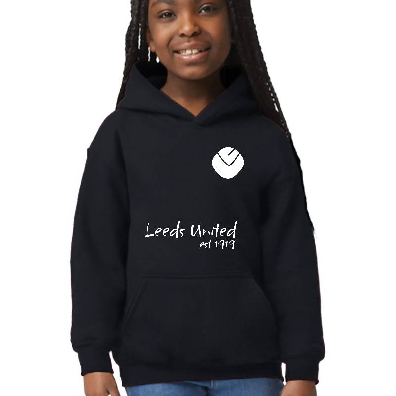Leeds United - Est1919 White design artwork printed on Youth Hooded Sweatshirt with latest DTF technology. Our new management team will place serving you. We offer best online shopping experience to our customers with 30 days return and exchange policy. Shop with confidence at T-funny.com
