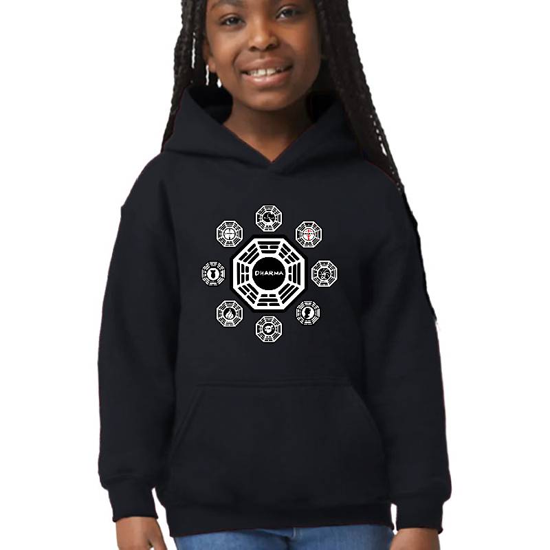 Dharma Initiative design artwork printed on Youth Hooded Sweatshirt with latest DTF technology. Our new management team will place serving you. We offer best online shopping experience to our customers with 30 days return and exchange policy. Shop with confidence at T-funny.com