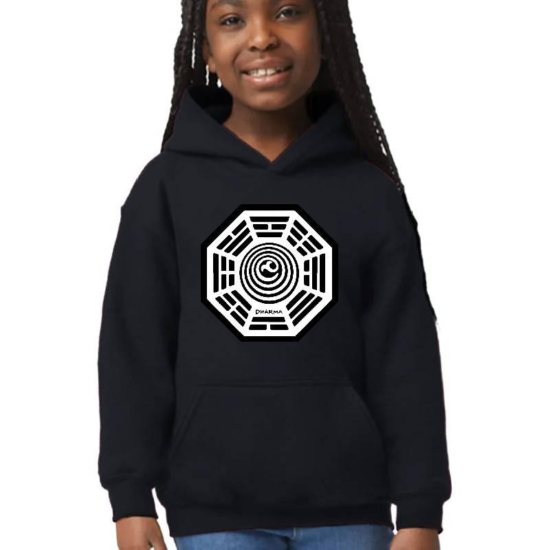Dharma Initiative Logo Lost Tv Show design artwork printed on Youth Hooded Sweatshirt with latest DTF technology. Our new management team will place serving you. We offer best online shopping experience to our customers with 30 days return and exchange policy. Shop with confidence at T-funny.com