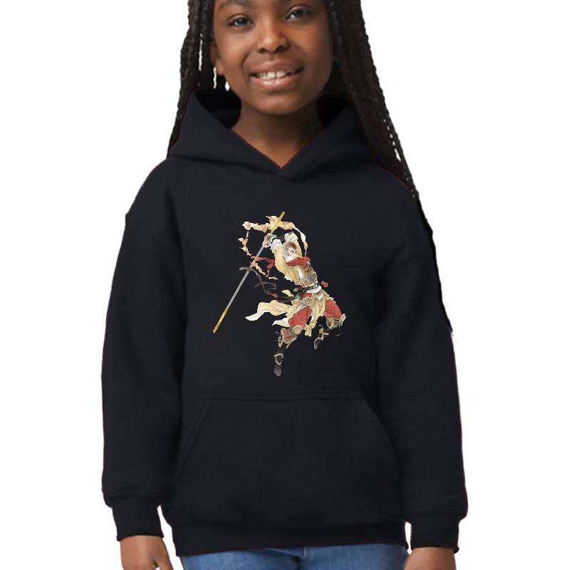 The Monkey King design artwork printed on Youth Hooded Sweatshirt with latest DTF technology. Our new management team will place serving you. We offer best online shopping experience to our customers with 30 days return and exchange policy. Shop with confidence at T-funny.com