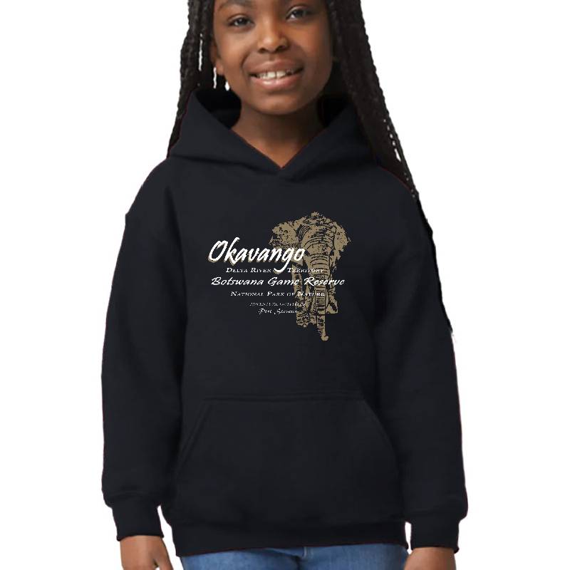 Okavango Elephant design artwork printed on Youth Hooded Sweatshirt with latest DTF technology. Our new management team will place serving you. We offer best online shopping experience to our customers with 30 days return and exchange policy. Shop with confidence at T-funny.com