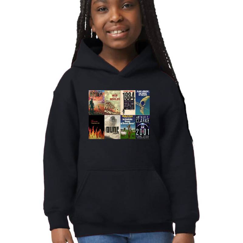 Famous science fiction books design artwork printed on Youth Hooded Sweatshirt with latest DTF technology. Our new management team will place serving you. We offer best online shopping experience to our customers with 30 days return and exchange policy. Shop with confidence at T-funny.com