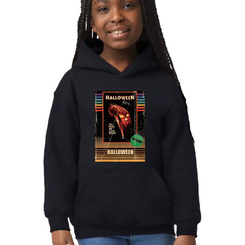 Halloween 1978 Vhs Horror Movie Poster design artwork printed on Youth Hooded Sweatshirt with latest DTF technology. Our new management team will place serving you. We offer best online shopping experience to our customers with 30 days return and exchange policy. Shop with confidence at T-funny.com