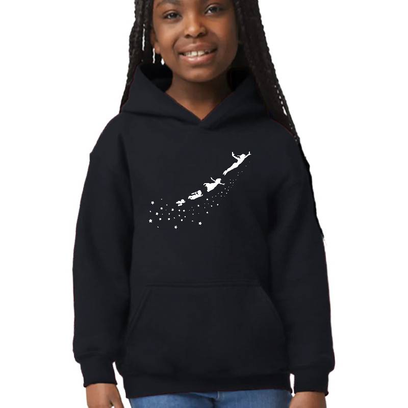 Peter Pan Flying design artwork printed on Youth Hooded Sweatshirt with latest DTF technology. Our new management team will place serving you. We offer best online shopping experience to our customers with 30 days return and exchange policy. Shop with confidence at T-funny.com