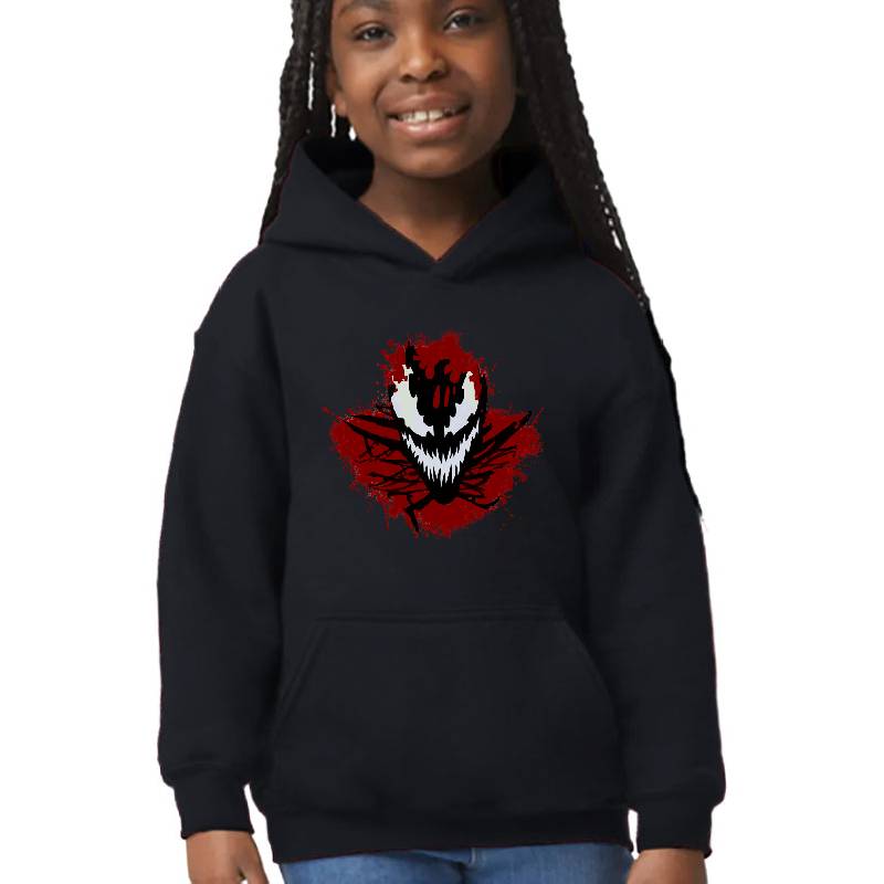 Carnage Smile design artwork printed on Youth Hooded Sweatshirt with latest DTF technology. Our new management team will place serving you. We offer best online shopping experience to our customers with 30 days return and exchange policy. Shop with confidence at T-funny.com