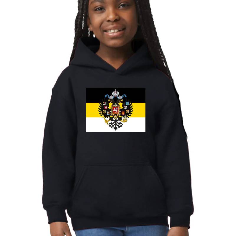 Russian empire stylised flag design artwork printed on Youth Hooded Sweatshirt with latest DTF technology. Our new management team will place serving you. We offer best online shopping experience to our customers with 30 days return and exchange policy. Shop with confidence at T-funny.com