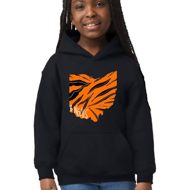 Ohio Bengals Football design artwork printed on Youth Hooded Sweatshirt with latest DTF technology. Our new management team will place serving you. We offer best online shopping experience to our customers with 30 days return and exchange policy. Shop with confidence at T-funny.com