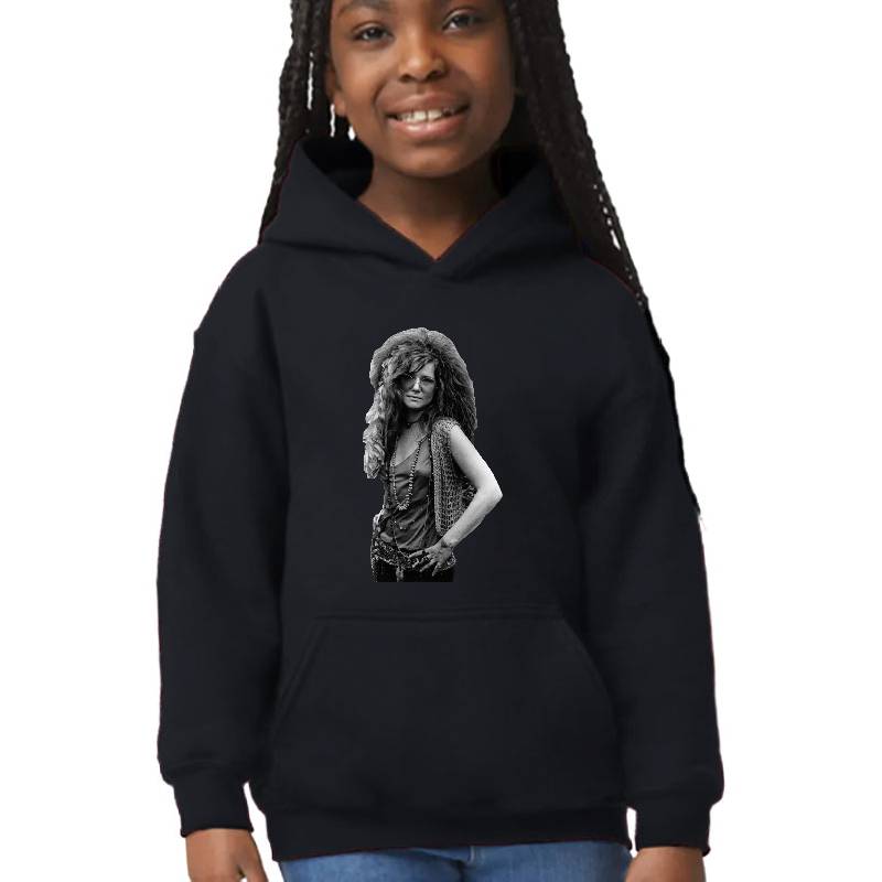 Janis Joplin design artwork printed on Youth Hooded Sweatshirt with latest DTF technology. Our new management team will place serving you. We offer best online shopping experience to our customers with 30 days return and exchange policy. Shop with confidence at T-funny.com