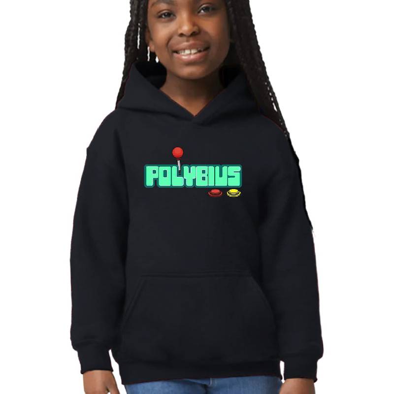 Polybius arcade game design artwork printed on Youth Hooded Sweatshirt with latest DTF technology. Our new management team will place serving you. We offer best online shopping experience to our customers with 30 days return and exchange policy. Shop with confidence at T-funny.com