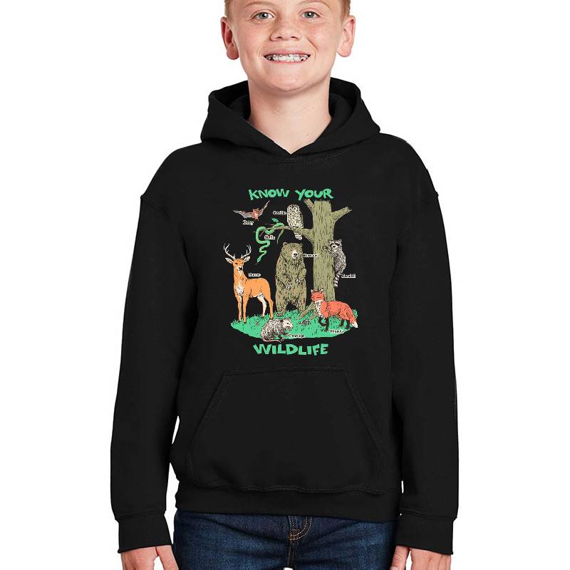 Know Your Wildlife design artwork printed on Youth Hooded Sweatshirt with latest DTF technology. Our new management team will place serving you. We offer best online shopping experience to our customers with 30 days return and exchange policy. Shop with confidence at T-funny.com