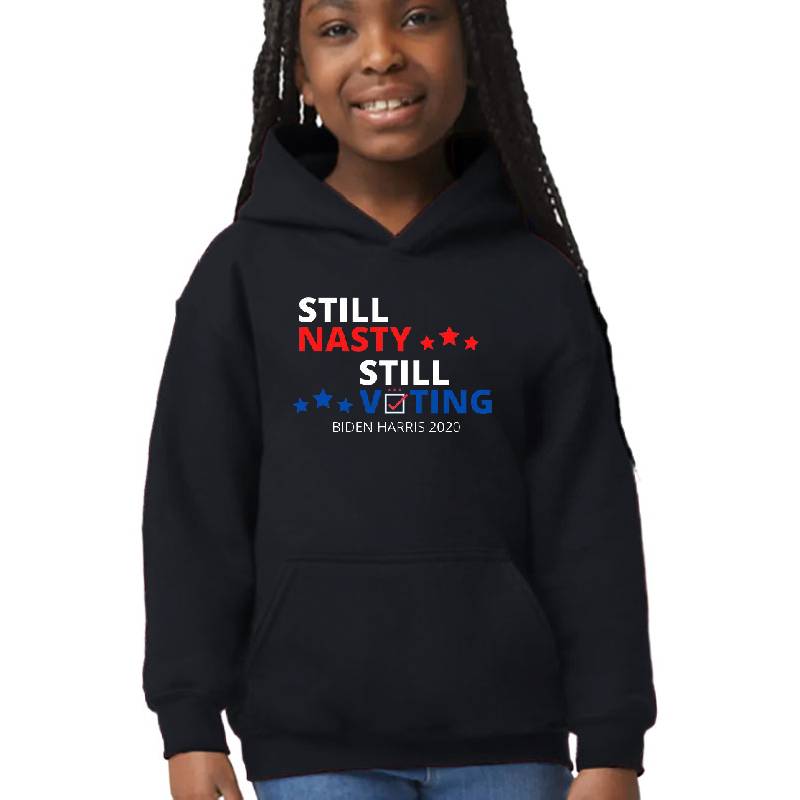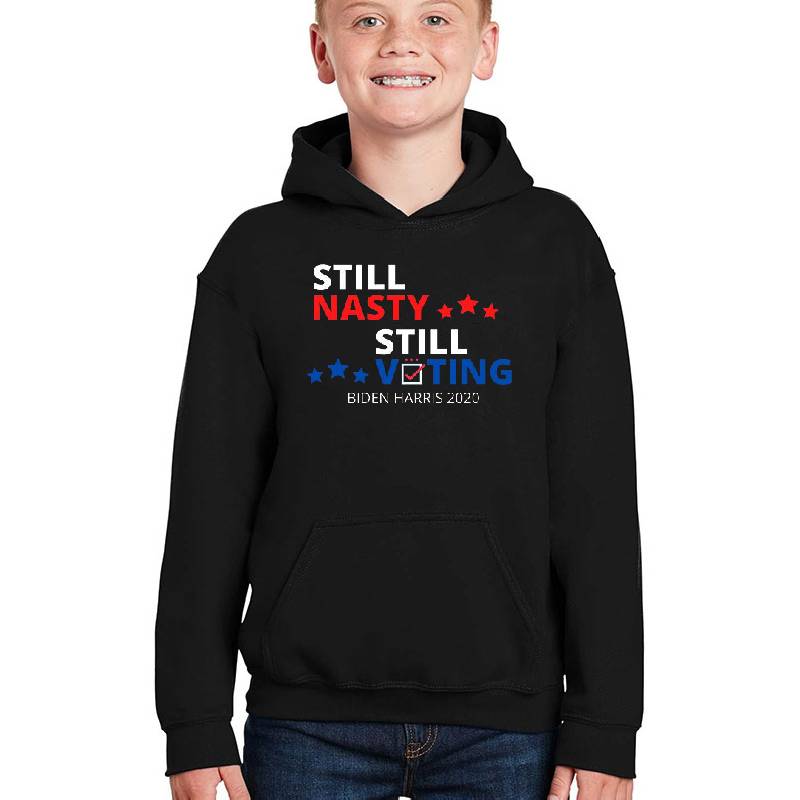Still Nasty Still Voting Biden Harris 2020 Democratic Party Unisex T Shirt design artwork printed on Youth Hooded Sweatshirt with latest DTF technology. Our new management team will place serving you. We offer best online shopping experience to our customers with 30 days return and exchange policy. Shop with confidence at T-funny.com