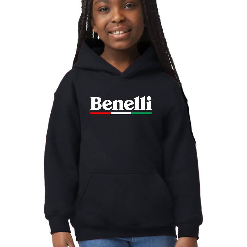 BENELLI design artwork printed on Youth Hooded Sweatshirt with latest DTF technology. Our new management team will place serving you. We offer best online shopping experience to our customers with 30 days return and exchange policy. Shop with confidence at T-funny.com