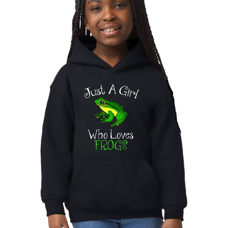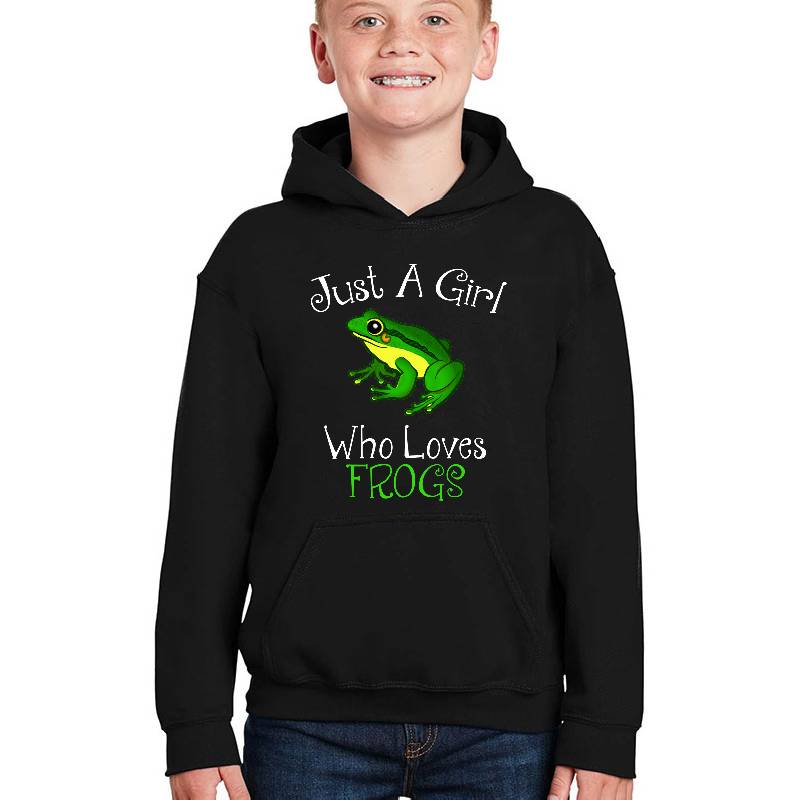 Just A Girl Who Loves Frogs design artwork printed on Youth Hooded Sweatshirt with latest DTF technology. Our new management team will place serving you. We offer best online shopping experience to our customers with 30 days return and exchange policy. Shop with confidence at T-funny.com