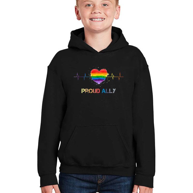 proud ally design artwork printed on Youth Hooded Sweatshirt with latest DTF technology. Our new management team will place serving you. We offer best online shopping experience to our customers with 30 days return and exchange policy. Shop with confidence at T-funny.com