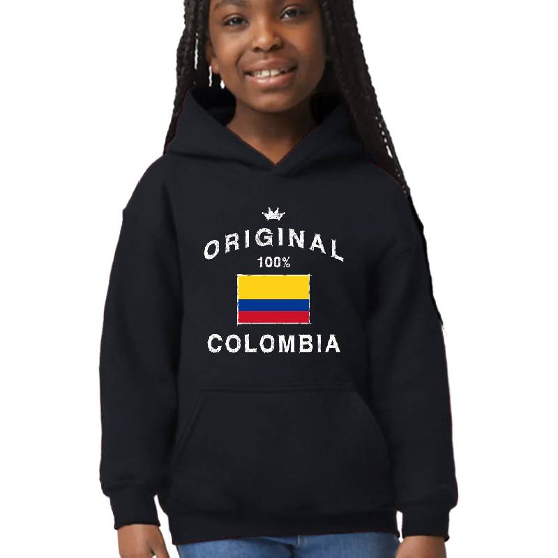 Colombia Colombian flag flag design artwork printed on Youth Hooded Sweatshirt with latest DTF technology. Our new management team will place serving you. We offer best online shopping experience to our customers with 30 days return and exchange policy. Shop with confidence at T-funny.com