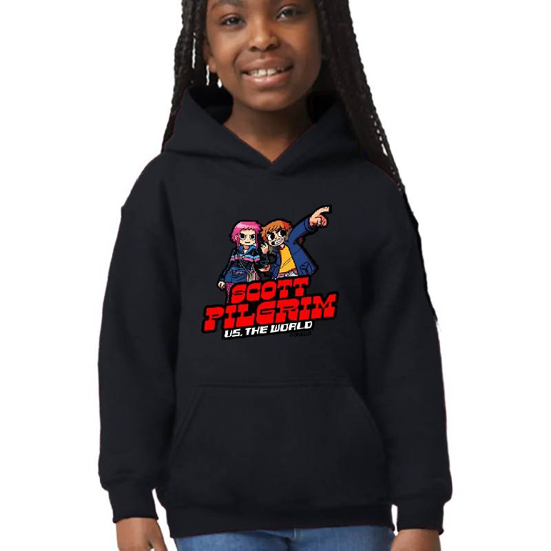 Scott Pilgrim vs the world cartoonish. Birthday party gifts. Officially licensed merch. design artwork printed on Youth Hooded Sweatshirt with latest DTF technology. Our new management team will place serving you. We offer best online shopping experience to our customers with 30 days return and exchange policy. Shop with confidence at T-funny.com